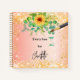 An orange and rose gold gradient background. Decorated with sunflowers, eucalyptus greenery and faux gold glitter sparkles. Personalize and add a title and name. Black colored letters. The name is written with a modern hand lettered signature style script. A notebook for drawings, sketching, notes and school homework.