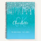 Sketchbook teal blue glitter aqua green monogram notebook