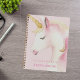 A girly sketchbook for school, journalling or diary. A soft, blush pink background, decorated with a cute pink watercolored unicorn. Personalise and add a name.
