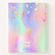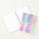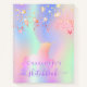 A trendy iridescent colored background with unicorn and rainbow pastel colors in pink, purple, mint green. Decorated with dripping faux gold and pink stars and a rainbow colored unicorn. Personalize and add a name. The title: Sketchbook is written with a trendy hand lettered script with swashes. To keep the swashes only delete the sample name, leave the spaces or emoji's in front and after the name.