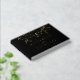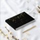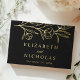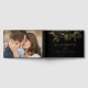 Elegant floral wedding guest book featuring sketched gold foil flowers and leaves near the top of the design with a black background. Personalise the foil wedding guest book with your names and wedding details below. Add custom text to the spine such as your names, wedding date, etc. The back of the floral guest book features your horizontal engagement photo. Designed to coordinate with our Sketched Floral wedding collection.