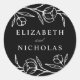 Sketched Black and White Floral Wedding Classic Round Sticker