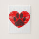 Sketched Dog Paw In Red Heart Jigsaw Puzzle