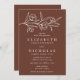 Elegant floral wedding invitations featuring white sketched flowers and leaves near the top of the invite with a dark brown background. Personalise the botanical wedding invitation with your names and wedding details below in classic white lettering. Designed to coordinate with our Sketched Floral wedding collection.