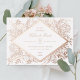 Real foil is here! Rose Gold foil on custom colour background; choose from classic gold, silver or rose gold. Hand sketched frame with diamond centre.