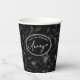 A beautiful pattern of hand drawn flower outlines in shades of gray on an optional black background is used to create the pieces of this modern collection. The striking paper cup for any occasion is shown here featuring elegant handwritten script text and a template to add your name and/or other message on a black background. Search ID939 to see all the products in this design set.