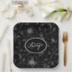 A beautiful pattern of hand drawn flower outlines, in shades of gray on an optional black background, is used to create the pieces of this modern collection. The striking paper plate for any occasion is shown here featuring elegant handwritten script text and a template to add your name and/or other message on a black label. Search ID939 to see all the products in this design set.