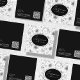 A beautiful pattern of hand drawn flower outlines in shades of gray on a white background is topped by a black label to hold your text. The business card shown here also features a flowing handwritten script text on the front and your QR code on the reverse. Add your own contact details using the provided template. Search ID939 to see all the products in this design set.