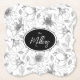 A beautiful pattern of hand drawn flower outlines in shades of grey is used to create the pieces of this modern collection. The striking paper coaster shown here also features optional handwritten script text in white on a black background. Search ID939 to see all the products in this design set.