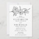 Sketched Floral White and Black Wedding Invitation