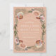 A unique take on floral wreath with touches of peach and maroon over a tan taupe background (customise the background colour to any of your choice); original illustration by Becky Nimoy.