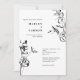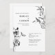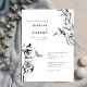 Sketched Hand Drawn Floral Black White Wedding Invitation