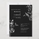 Sketched Hand Drawn Floral Sleek Black Wedding Invitation