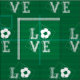 A cool sports soccer design featuring a typography style love lettering with a soccer ball in white on a green football soccer field background. Ideal for any soccer fan or football player.
