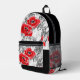 Sketched pen hand drawn red poppies flowers floral printed backpack