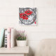 Sketched pen hand drawn red poppies flowers floral square wall clock