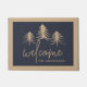 Perfect for the holidays, winter time, or your woodland home or cabin, this cute forest themed doormat features "welcome" in handwritten calligraphy script, with a trio of hand sketched pine tree illustrations. Personalize with your family name.