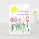A sketched little garden of tulips with a bright yellow sun, just to say "Hello"