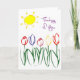 A sketched little garden of tulips with a bright yellow sun, just to say "Thinking of you"