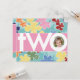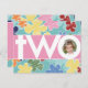 Highlight your beautiful two-year-old in the "O" for "two" on this invitation. Colourful, roughly sketched flowers make an adorable background. Add your child's photograph and customise the information on the back to make your child's second birthday an unforgettable one! Available in other colour options with matching postage and favours. Some art courtesy of KeepDesigning.