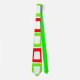 This necktie has a mid-century modern design of repeating skewed rectangles in red, orange, green, and turquoise.