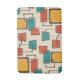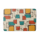A stylish 1950's atomic era abstract art pattern with dark brown skewed squares in turquoise, burnt orange and gold.