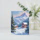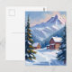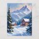 Ski Cabin Mountain Landscape Watercolor Winter Postcard