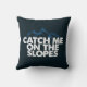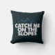 This cute modern ski lover winter sports design pillow is perfect for a skier or skiing enthusiast. The text on the design says "Catch Me On The Slopes". Makes the perfect ideal gift for the black run fan