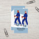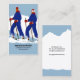 A vintage stylised image of two people skiing against a blue mountain backdrop. You can customise this professionally designed Ski Instructor Business Card Template for any individual or a corporation.