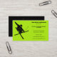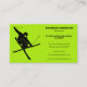 Promote your ski lessons business or other services for skiers with these eye-catching business cards in lime green and black. They feature a silhouette style illustration of a skier doing a ski trick and are easy to personalise with your business information and contact details.