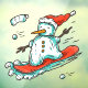 Ski Lodge Santa Winter Snowman On Snowboard Decor