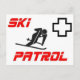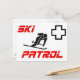 "Ski Patrol" written, surrounding a skier graphic, with a patrol cross in the right corner.