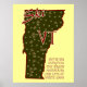 Reminiscent of vintage ski posters with a bit of a modern twist. Features a map of Vermont with all the downhill ski areas marked with a downhill skier.