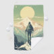 Retro 1950s poster style illustration from a lonely skier on top of a mountain.