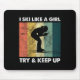 Skier Ski Retro Sportswoman Try Snow Sport Mouse Pad