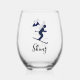 Skiing Design Stemless Wine Glass with customisable text.