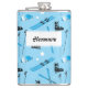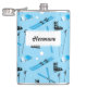 Skiing Equipment Pattern Blue Personalised Hip Flask
