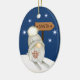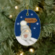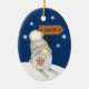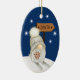 Here's a cute Holiday ornament for any child, especially a grandchild, daughter, son, niece or nephew. The front has an adorable little gnome with a long white beard and dressed in a white knitted hat. The gnome is on snow skis on a hillside with snowflakes around him. He carries a branch of red Holiday berries, and the sign behind him points towards Santa. The back of the ornament is matching blue with the snowflakes, and your custom text in white within 5 text fields. Make it say whatever you'd like!