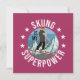 Funny winter ski sports illustration, showing mountain graphics and a woman on skis, and the saying: skiing is my superpower and little stars. This is the perfect gift for everyone, who loves skiing, mountains, and winter sports.