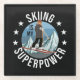 Funny winter ski sports illustration, showing mountain graphics and a woman on skis, and the saying: skiing is my superpower and little stars. This is the perfect gift for everyone, who loves skiing, mountains, and winter sports.
