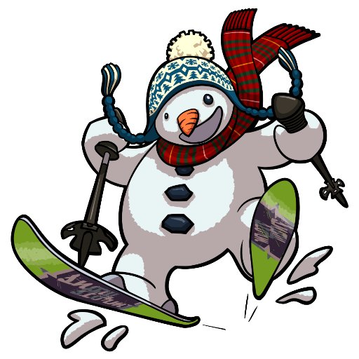 An ice cool contour sticker featuring a cartoon of an over excited snowman with a carrot nose and coal eyes, dashing through the snow on skis, in woolly winter hat and tartan scarf. An upbeat image for Xmas or throughout the winter.