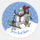 Skiing Snowman In Woolly Christmas Hat Cartoon Classic Round Sticker
