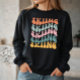 Skiing sweatshirt. © Tees & Sweats at Zazzle. This sweater has the word Skiing repeated in retro font and various colours.