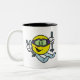 Cute smile face skiier with ski goggles, skis, and poles sports design.