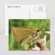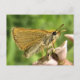 This postcard features a cute little furry orange and brown skipper butterfly on pink milkweed flowers with a lovely green background. Skippers are different than other butterflies and can be identified by their stockier bodies, larger compound eyes and antennae clubs hooked backward like a crochet hook.