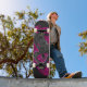 The essence of skateboarding is reflected in this incredible skateboard, whose design highlights the shape of a skater in the middle of the jump. With a vibrant background, this image captures the energy, skill, and passion of those who challenge gravity on four wheels. Each detail in the graph conveys movement, reflecting the freedom and determination of skaters seeking to overcome their own limits. More than a board, this skateboard is a symbol of empowerment, attitude and style.