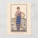 A postcard with the vintage fashion plate from 1914, Jupe de Grosse Toile. A blue and green plaid long skirt. An illustration by the Danish artist Gerda Wegener (1886-1940). A digitally altered and enhanced image from the French Journal des Dames.