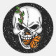Skull with a butterfly coming out of it's mouth digital art.  Black background.