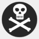 White skull bones on a black background. Give a sticker to scary pirate trick-or-treaters along with their candy treats.