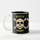 A skull & crossbones make up this fun mug. Customisable so you can add your own text and change the background colour. Makes a great gift!